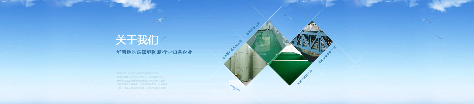 廣州市固希祥防腐工程有限公司是一家專門從事玻璃鋼防腐及生產玻璃鋼儲罐設備的綜合性企業,具有20多年的防腐工程施工歷史,三大核心業務:玻璃鋼防腐施工、油漆防腐施工、玻璃鋼儲罐等制品生產。內容涵蓋玻璃鋼儲罐、玻璃鋼防腐工程、地坪防腐工程、水泥池防腐工程、大中型廠房翻新工程、工程機械翻新、各類新舊設備的油漆噴涂及金屬設備防腐工程項目。公司致力于防腐工程的技術研究和工程施工;擁有150多名10年左右玻璃鋼防腐施工經驗的技術工人,可以快速,高質量完成客戶的需求。