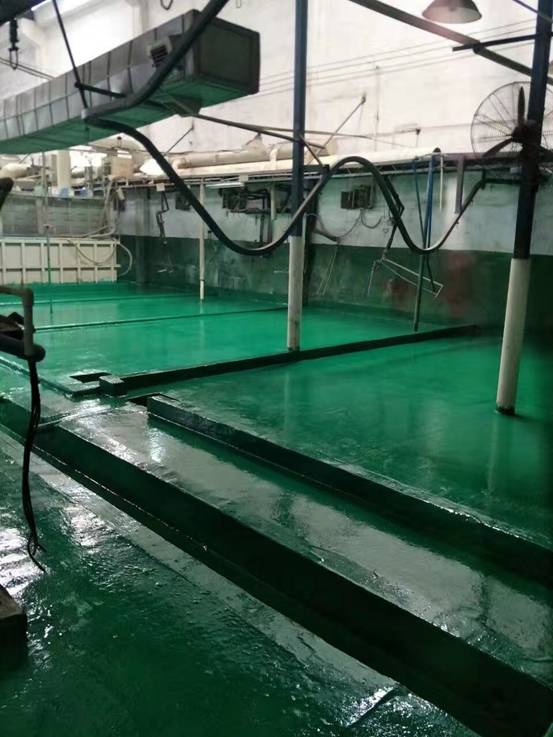 肇慶懷念鉍礦項目施工面積近1500m2,分為二期施工;一期建設玻璃鋼防腐設備區,由20臺玻璃鋼儲罐存儲各種酸堿化學品介質,地面采用乙烯基樹脂玻璃鋼粘+環氧地坪玻纖防腐,組建成一個集中式的庫存區域。二期施工建設是礦區主要工作區域全面實施環氧玻纖地坪防腐。
