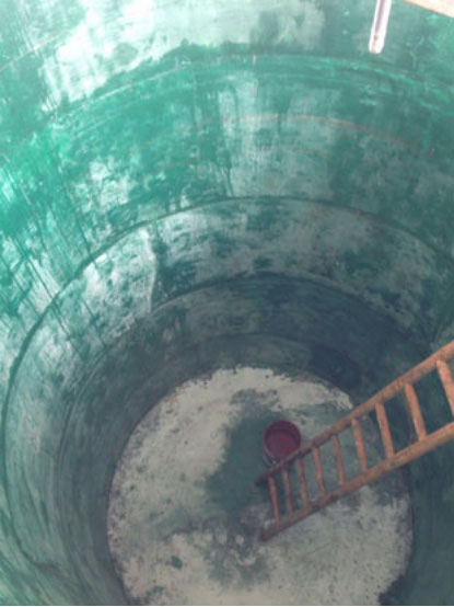2017年7月12日韶關國潤集團稀釋罐玻璃鋼防腐項目入場施工,稀釋罐型號為碳鋼罐,型號規格:DN2400*4500.介質為酸性液體。