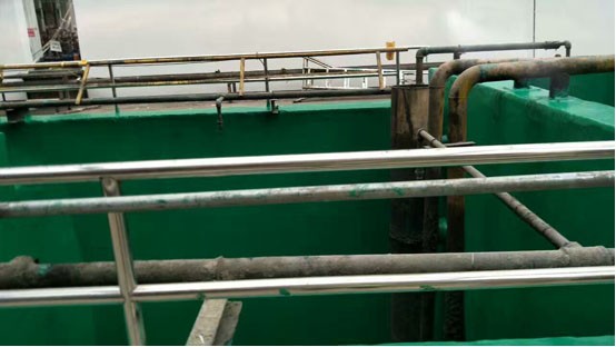 東莞生化池玻璃鋼防腐施工與2017年8月3號進場施工。生化池施工基面是混凝土結構,面積共65個平方左右。